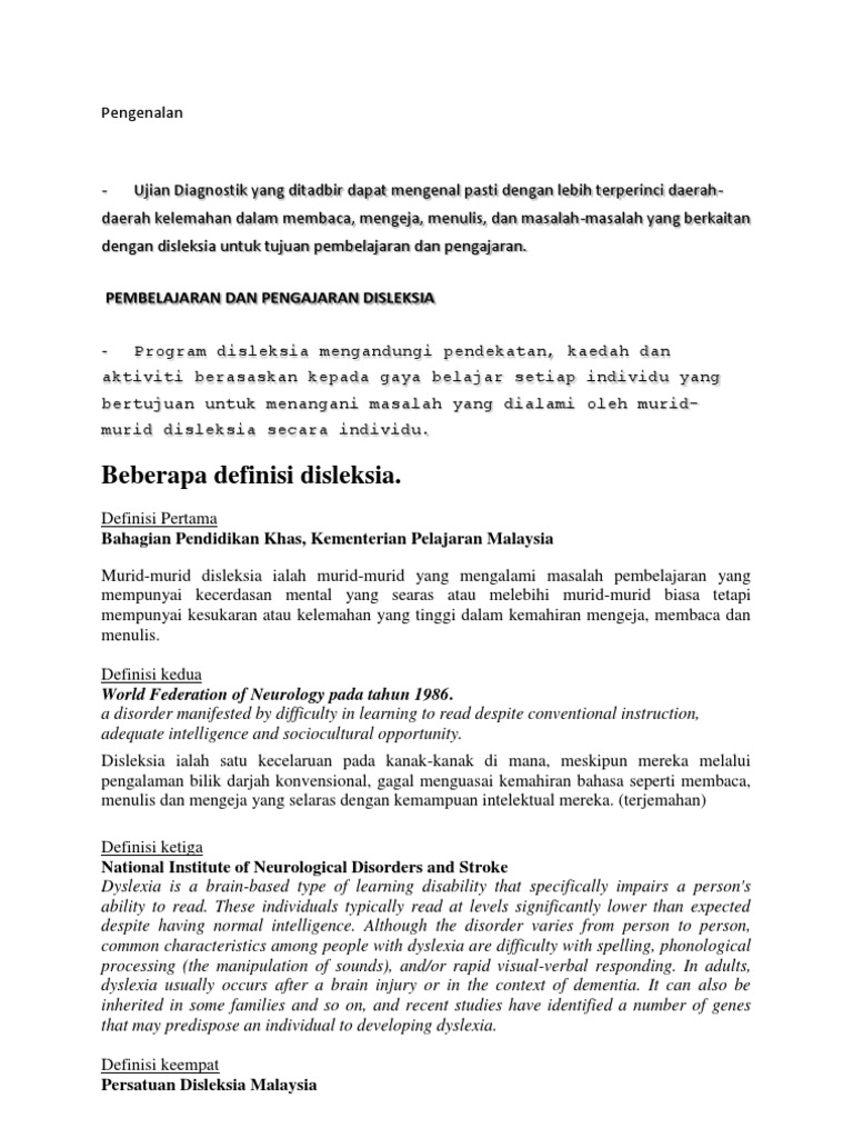 Strategi serta teknik pengajaran dan. Kajian ini dijalankan untuk mengenal pasti persepsi dan pengalaman guru pendidikan khas di sebuah Sekolah Menengah Kebangsaan di daerah Jeli terhadap masalah disleksia dalam kalangan pelajar. Oleh sebab usaha menghafal abjad dan membentuk suku kata itu bertujuan untuk membolehkan murid mengeja perkataan maka kaedah ini dinamakan juga kaedah mengeja.