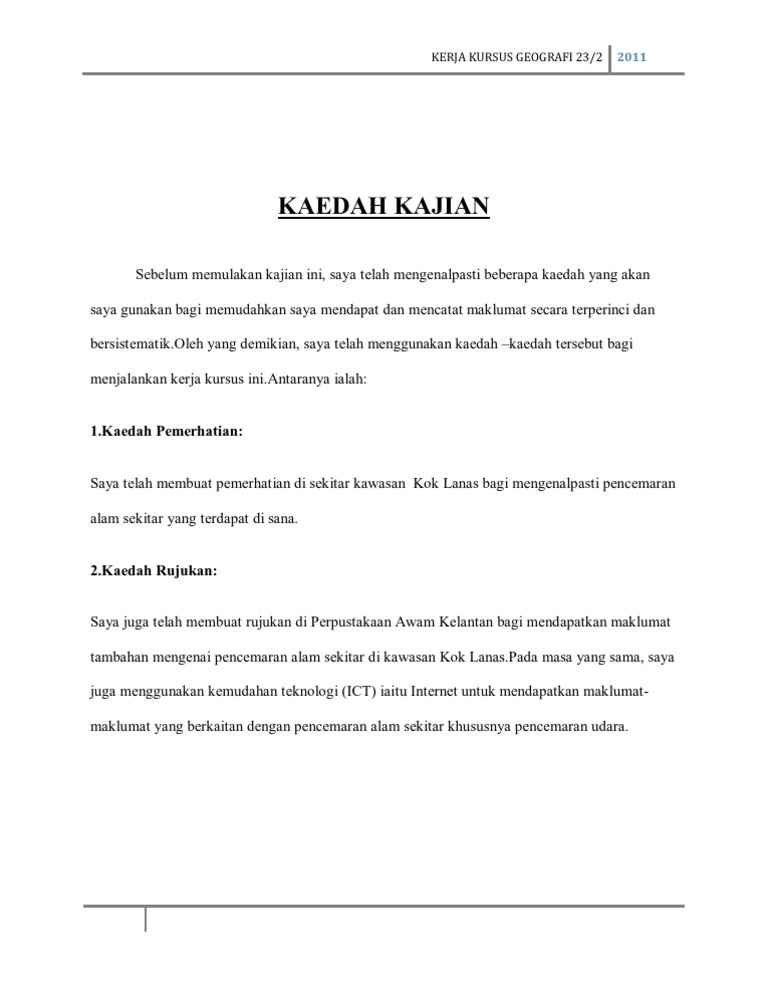 Kaedah tersebut adalah seperti berikut. Tugasan Kerja Kursus Geografi PT3 2018. Kaedah Kajian Tugasan Kerja Kursus Geografi PT3 2016 boleh dihuraikan lagiPentaksiran Tingkatan 3.
