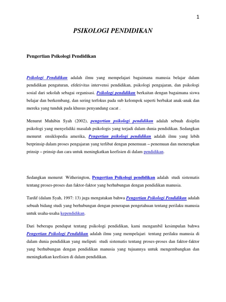 Psikologi Pendidikan Topik 1 Pengenalan Psikologi Pendidikan Objektif