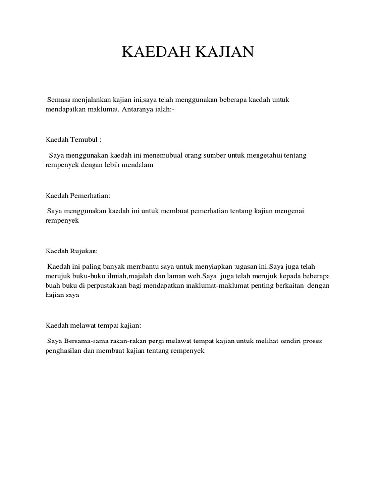 Kaedah Kajian Sejarah Pt3 2020 Contoh Terbaik. Kaedah pemerhatian Saya telah perhatikan kegiatan ekonomi di kawasan kajian. 40 Kaedah Kajian 41 Sumber Internet Berdasarkan kajian ini pengkaji telah menggunakan sumber internet bagi mendapatkan maklumat mengenai kajian yang dijalankan ini.