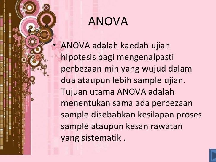 KESIMPULAN Analisis data ialah satu kaedah untuk mengawal dan mempersembahkan data prosedur statistik. Sebenarnya setiap kaedah analisis data mempunyai kelebihan dan kepentingan masing-masing dalam pengiraan sesuatu data.