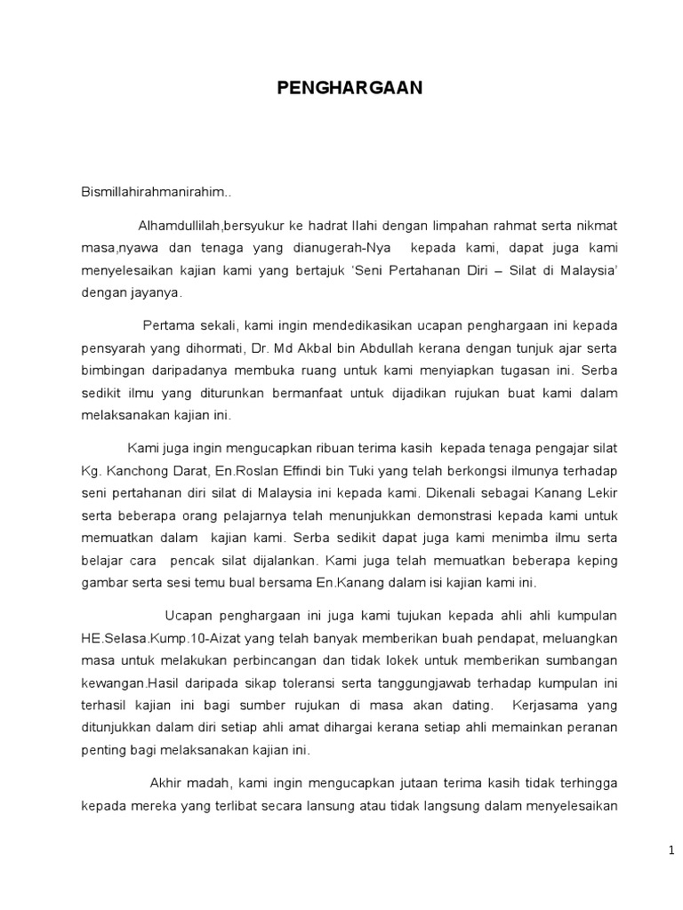 PENGHARGAAN Saya Amir Hasif Bin Zulkifli dari kelas 3 Amanah berasa amat bersyukur kepada Allah SWT kerana dapat menyiapkan Folio Sejarah ini yang bertajuk Sejarah Pentadbiran Tempatan FELDA. Mengenal pasti persepsi pelajar mengenai penerapan kemahiran kepimpinan dalam diri mereka menerusi aktiviti kokurikulum Silat Gayung di UTHM. Kajian beliau yang bertajuk Influence of age and maturation on fitness development trainability and competitive performance in youth silat telah mendapat pujian daripada pemeriksa luar yang berpendapat kajian pertama dalam bidang combat sport ini berjaya mengumpul bukti-bukti berdasarkan sumber-sumber sukan beladiri lain yang ada di.