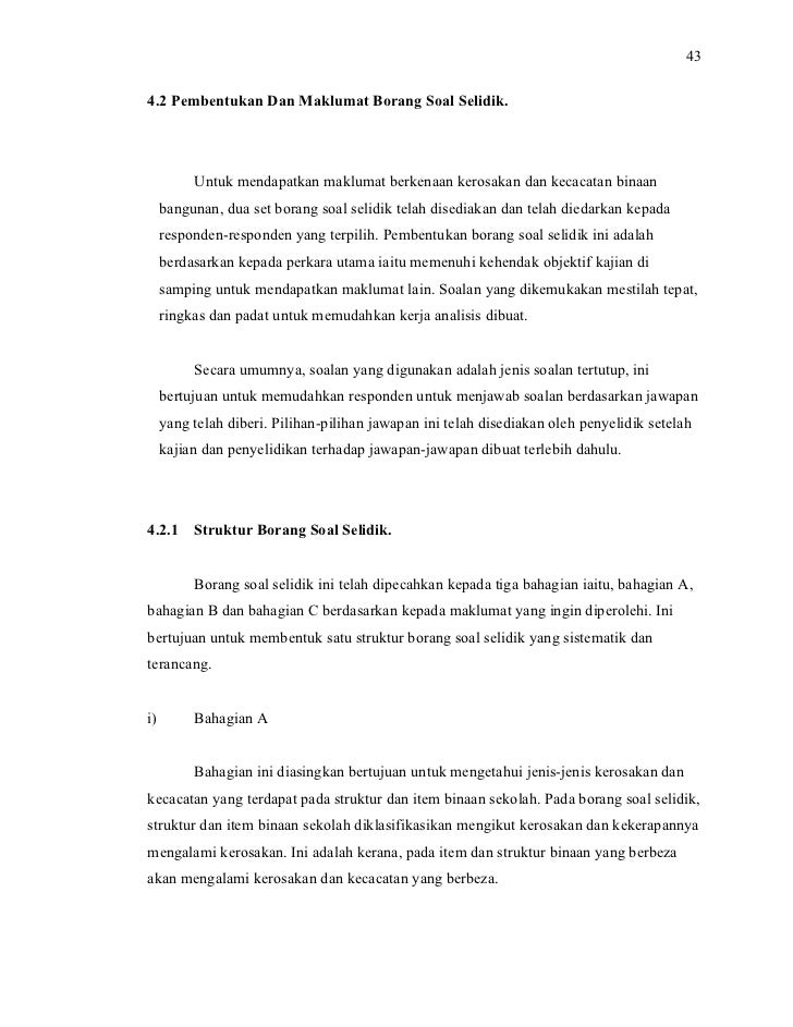Fokus perbincanga n kepada lima bahagia n utama. Kaedah soal selidik yang digunakan dalam kajian ini berbentuk soal selidik tertutup. Kajian in i merangkumi.