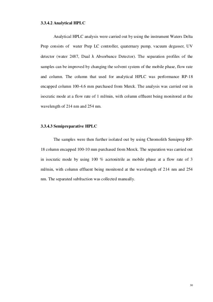 Susunan Alat Kolom HPLC. HPLC berbeda dari kromatografi kolom cairan konvensional dalam hal digunakan bahan pengisi kolom berupa partikel yang sangat kecil berukuran sampai 3-5 μm 1μm 10-6 m. Di dalam kajian ini MMM pelbagai interaksi telah dibangunkan untuk pengasingan protein daripada whey.