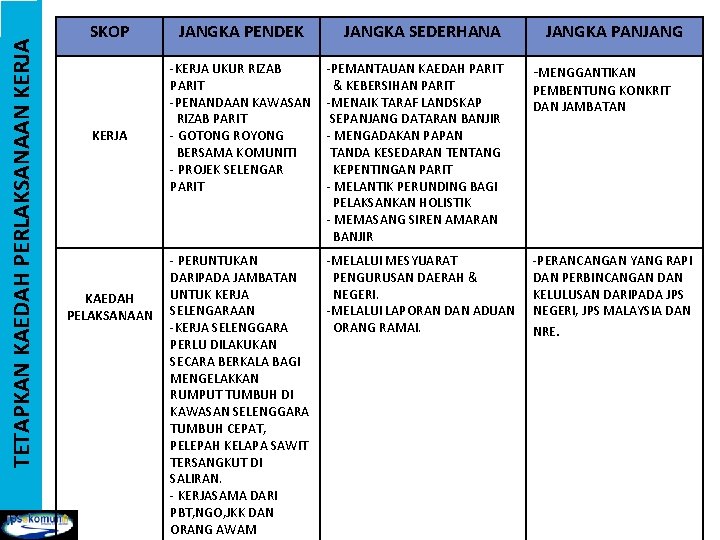 00 TARIKH KUATKUASA. Kekerapan teknik pencegahan aktif perlu dilakukan bergantung kepada keadaan persekitaran dan kualiti komponen sistem. Memasang siren amaran banjir peruntukan daripada jabatan untuk kerja selenggaraan kaedah pelaksanaan kerja selenggara perlu dilakukan secara berkala bagi mengelakkan rumput tumbuh di kawasan selenggara tumbuh cepat pelepah kelapa sawit tersangkut di saliran kerjasama dari pbt ngo lain jkk dan orang awam melalui mesyuarat.